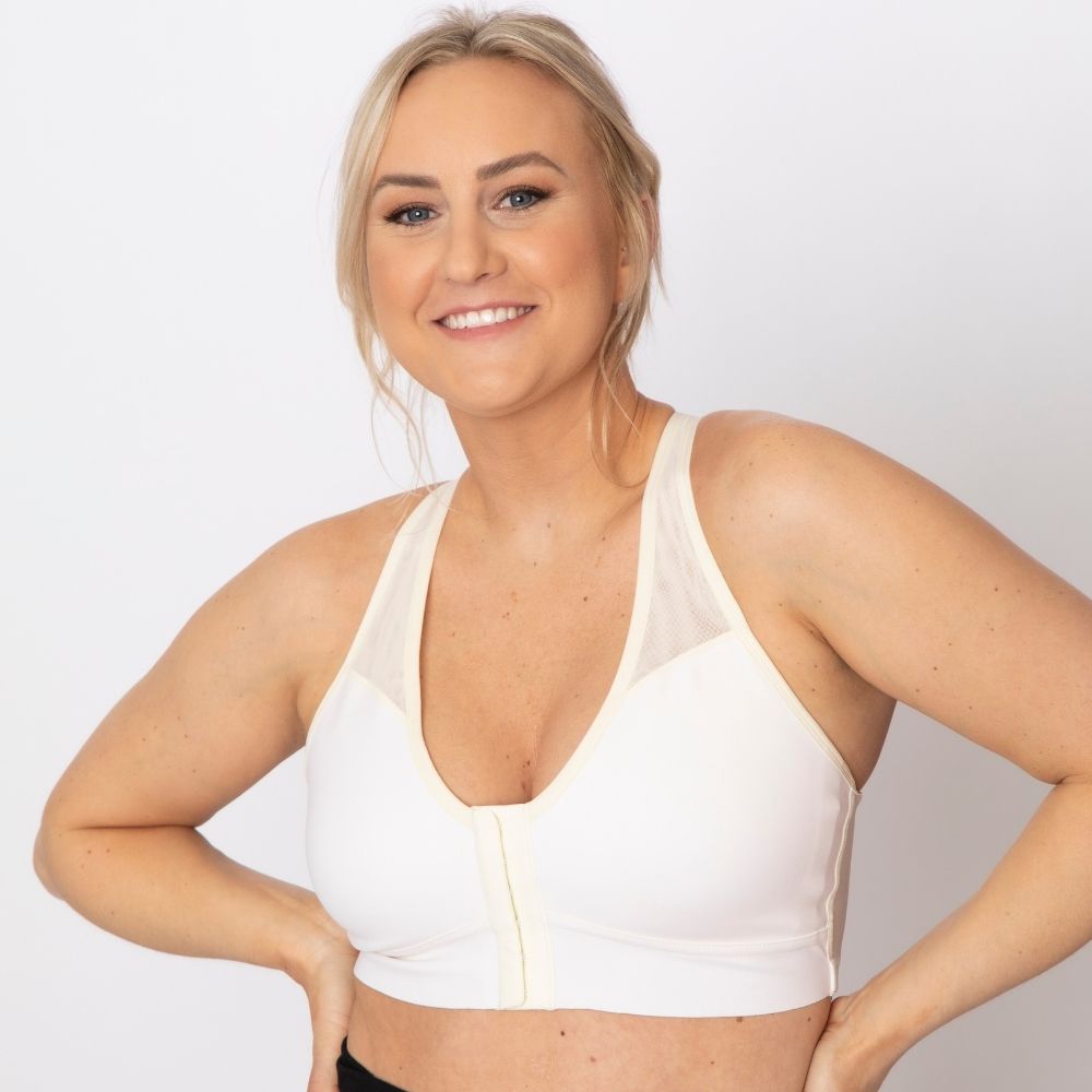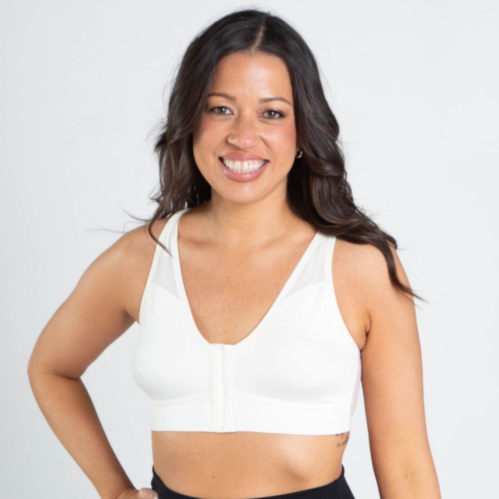 - The Bianca is a pocketed front-closure bra that is both supportive and soft, making it one of the most comfortable bras in our collection. The Bianca makes workouts hassle-free, allowing you to feel strong and supported. The cross-back design ensures support throughout your workout, while the mesh panel will cool you down. Thanks to its superior level of support, it’s one of the best bras for back pain and shoulder pain. Keep in mind that this product also incorporates a snugger fit for extra support to help keep things in place. If you prefer to not have a snug bra, we recommend the Rora Front Closure Bra instead