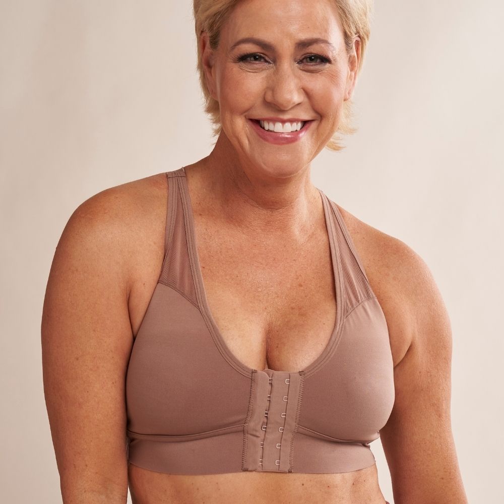 - The Bianca is a pocketed front-closure bra that is both supportive and soft, making it one of the most comfortable bras in our collection. The Bianca makes workouts hassle-free, allowing you to feel strong and supported. The cross-back design ensures support throughout your workout, while the mesh panel will cool you down. Thanks to its superior level of support, it’s one of the best bras for back pain and shoulder pain. Keep in mind that this product also incorporates a snugger fit for extra support to help keep things in place. If you prefer to not have a snug bra, we recommend the Rora Front Closure Bra instead