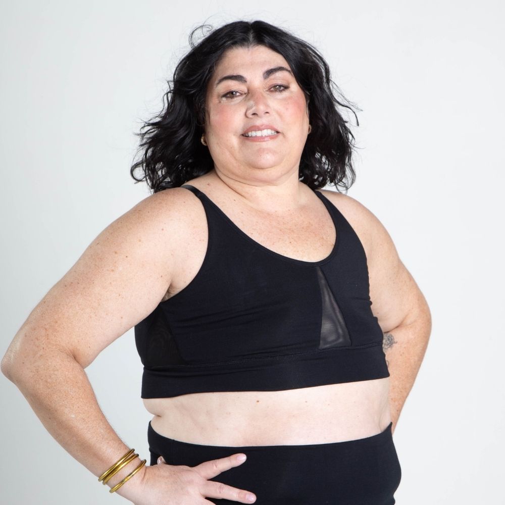 - Pocketed cups that easily accommodate modesty pads, prostheses or lightweight breast forms as needed