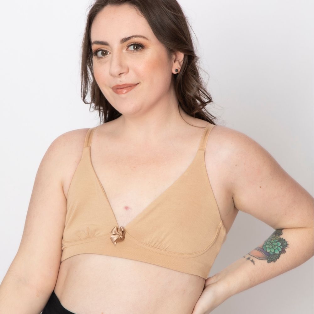 - Pocketed cups that easily accommodate modesty pads, prosthesis or lightweight breast forms as needed