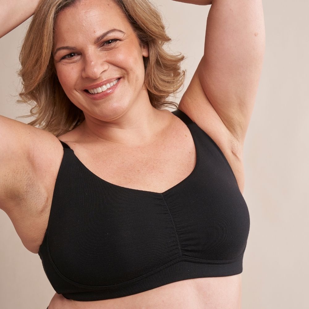 - Pocketed cups that easily accommodate modesty pads, prosthesis or lightweight breast forms as needed