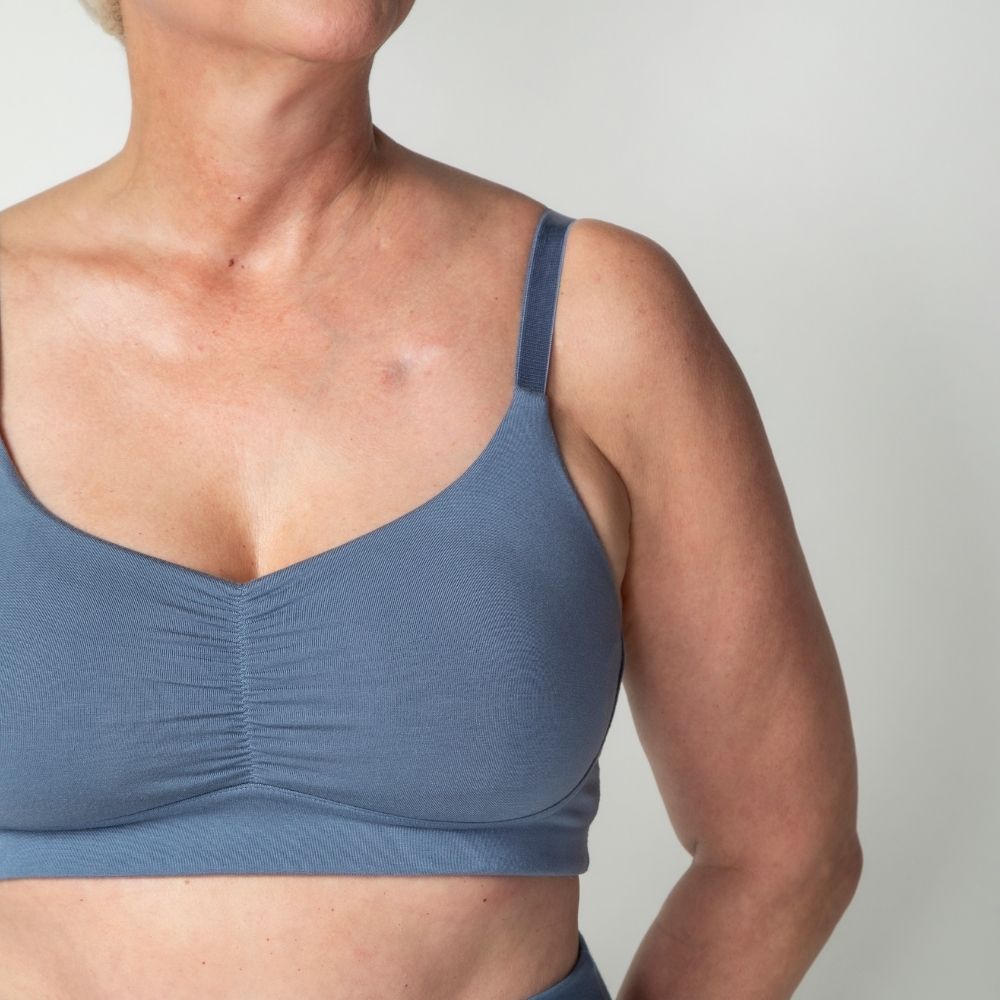 - Pocketed cups that easily accommodate modesty pads, prosthesis or lightweight breast forms as needed