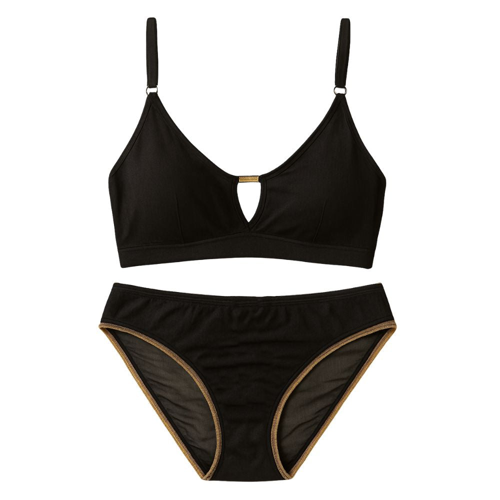 Victoria Keyhole Mesh Bra and Mesh Brief Set - Black
