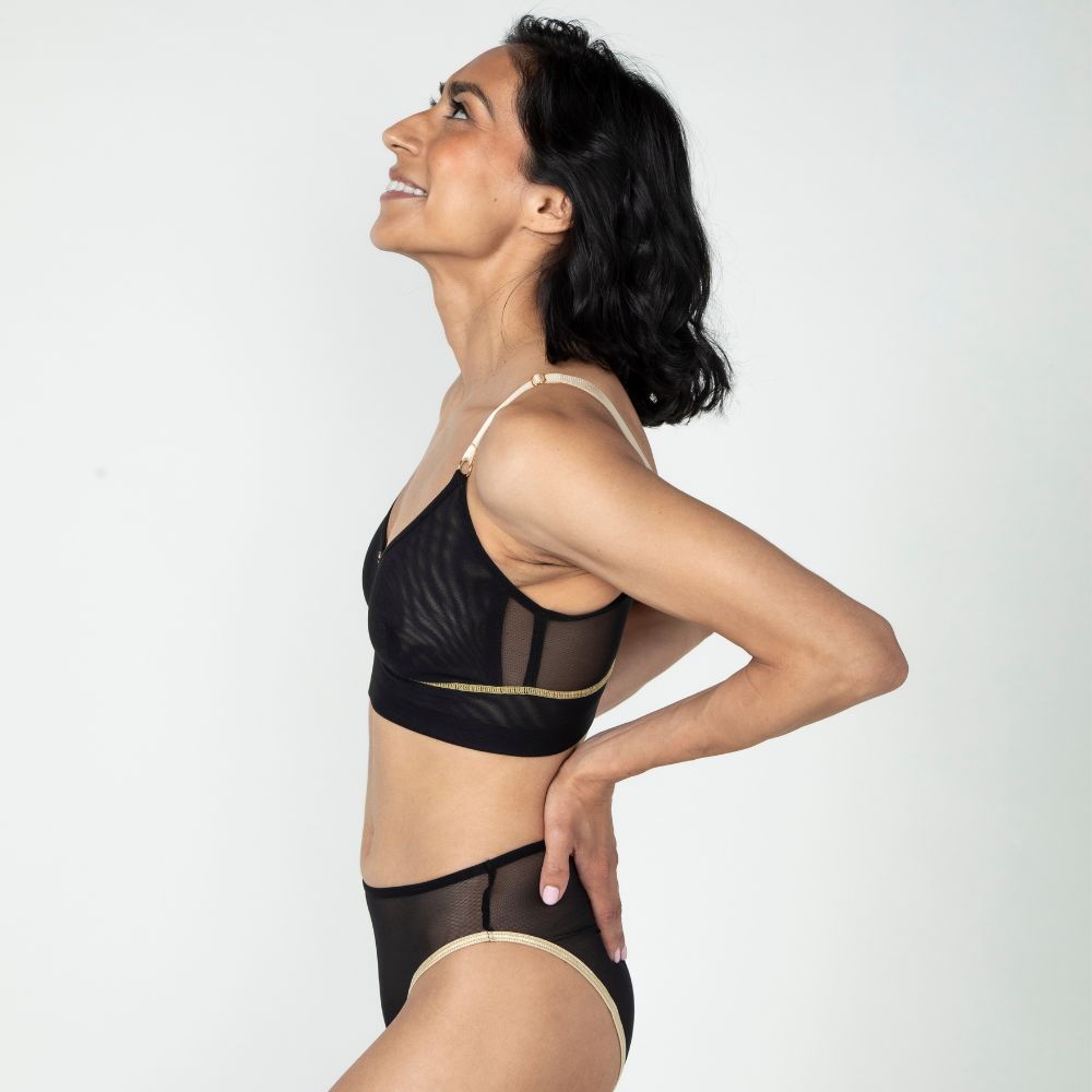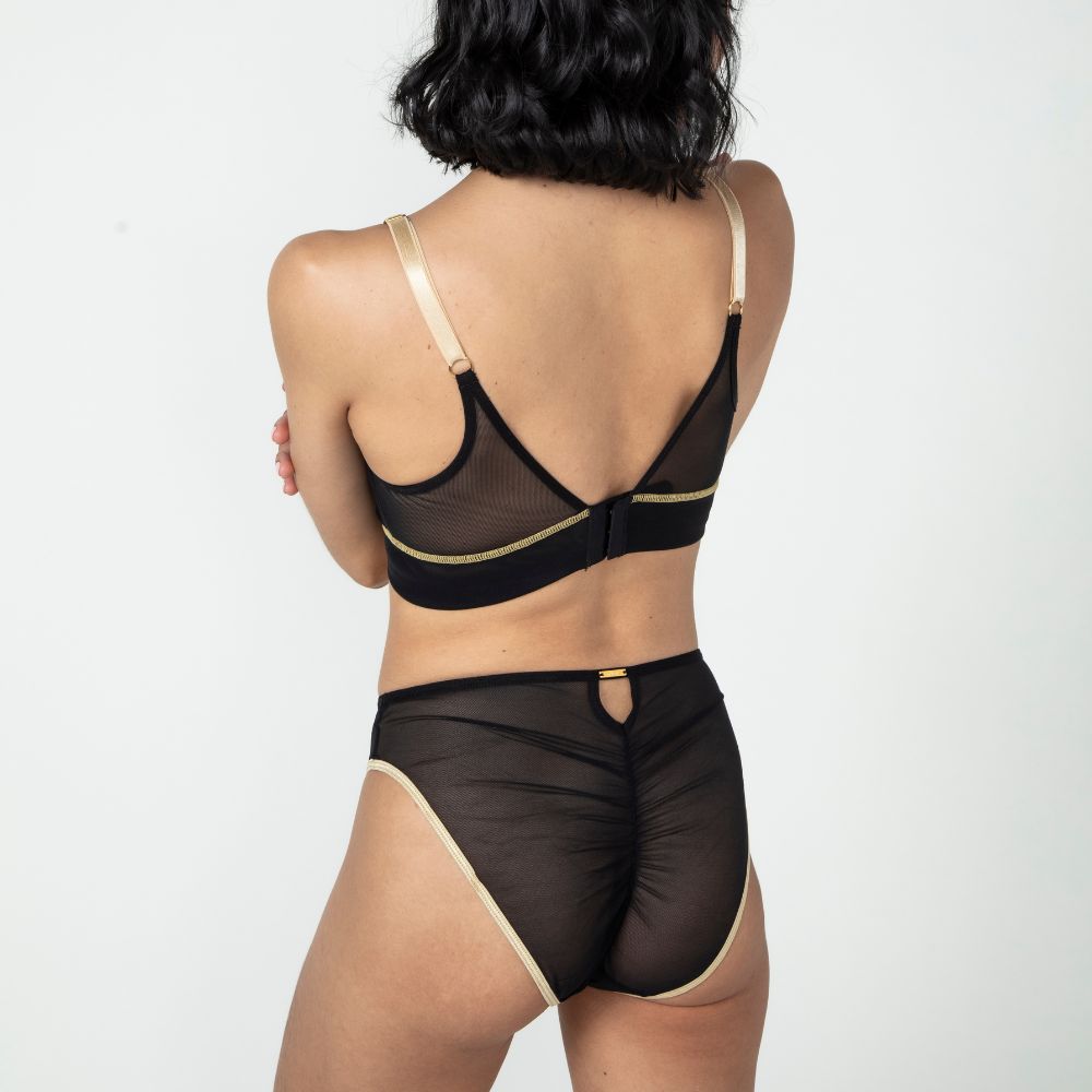 - Mesh Brief with soft gold elastic trim and back keyhole