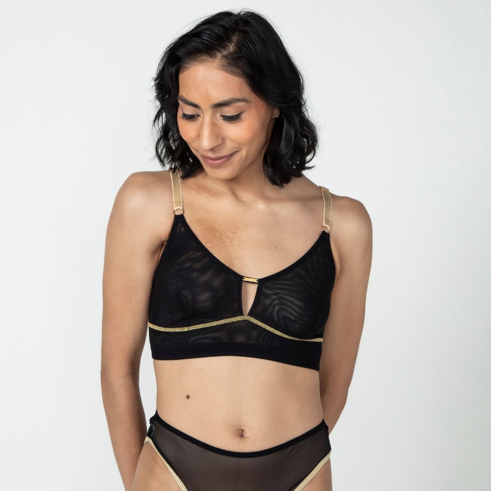 - Unlock your inner babe with this new keyhole mesh bralette and panty set! It's sexy, flattering, and adds a fun, edgy element to your wardrobe. Not to mention, the sneak peek with the keyhole will make you feel confident and playful. Plus, it's lightweight, semi-sheer, and pocketed for breast forms