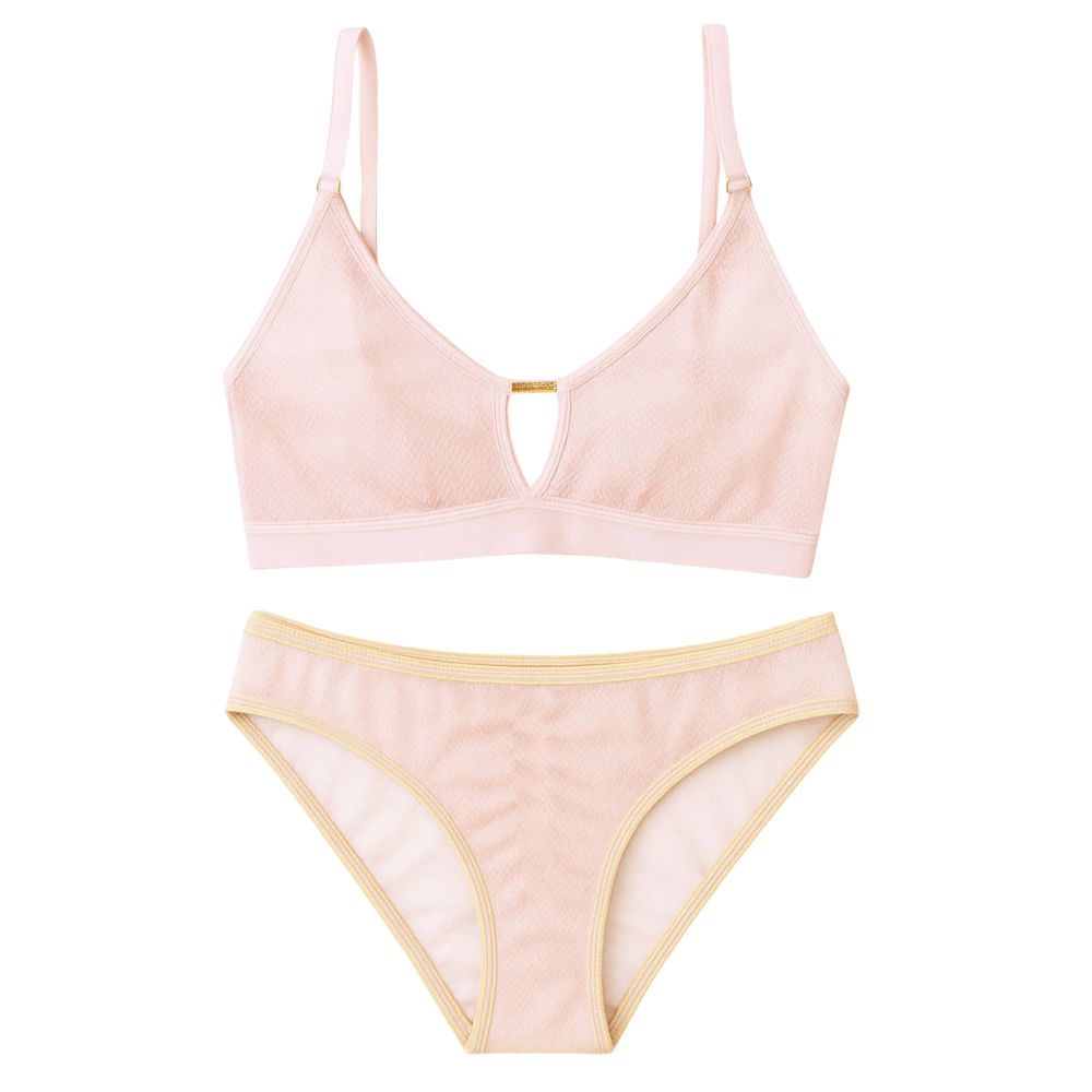 Victoria Keyhole Mesh Bra and Mesh Brief Set - Blush