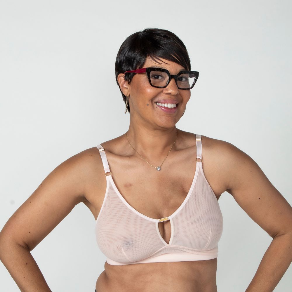 - Pocketed cups that easily accommodate modesty pads, prostheses or lightweight breast forms as needed