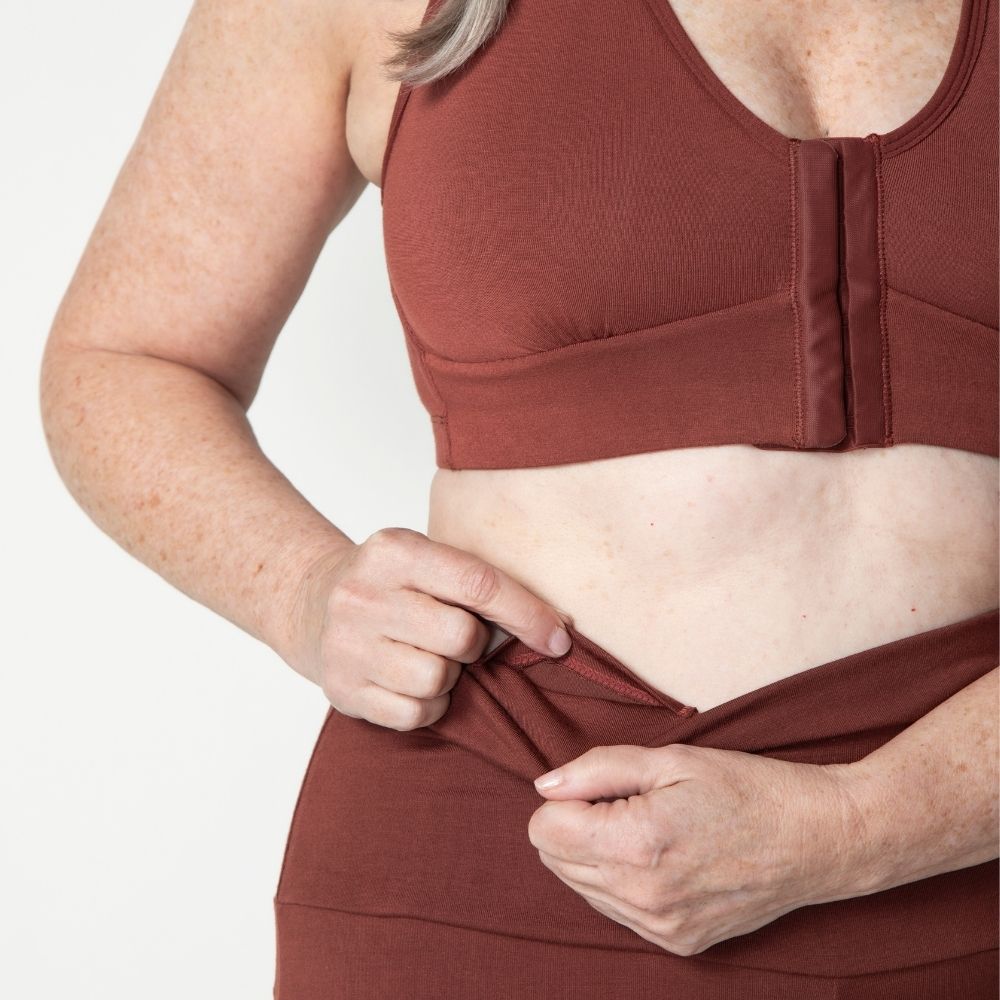 - Features two interior pockets along the waistband, perfect for holding drains during recovery or small essentials